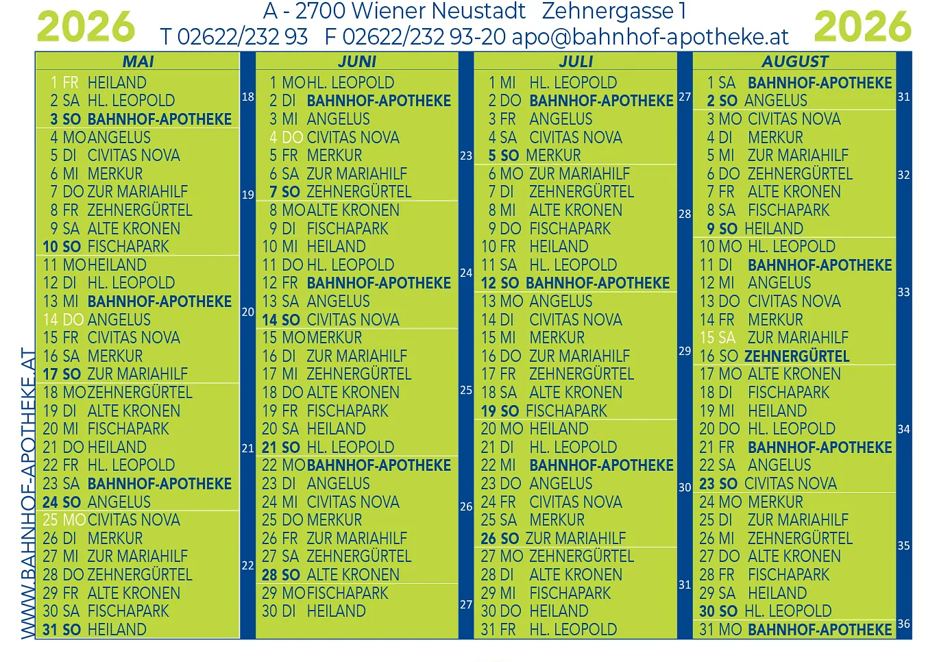 Ihre Bereitschaftsapotheke in Wiener Neustadt